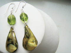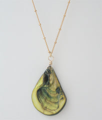 Shimmery mother-of-pearl briolette hangs from a simple, delicate gold-filled beaded chain and hooks. Earrings hang 2 1/2 in. long. Necklace is 20 in.